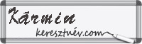 Kármin egy K betűvel kezdődő női keresztnév*. Egy százezer névből álló telefonkönyvben Kármin utónév 0 alkalommal szerepel benne.
