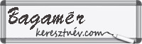 Bagamér egy B betűvel kezdődő férfi keresztnév*. Egy százezer névből álló telefonkönyvben Bagamér utónév 0 alkalommal szerepel benne.